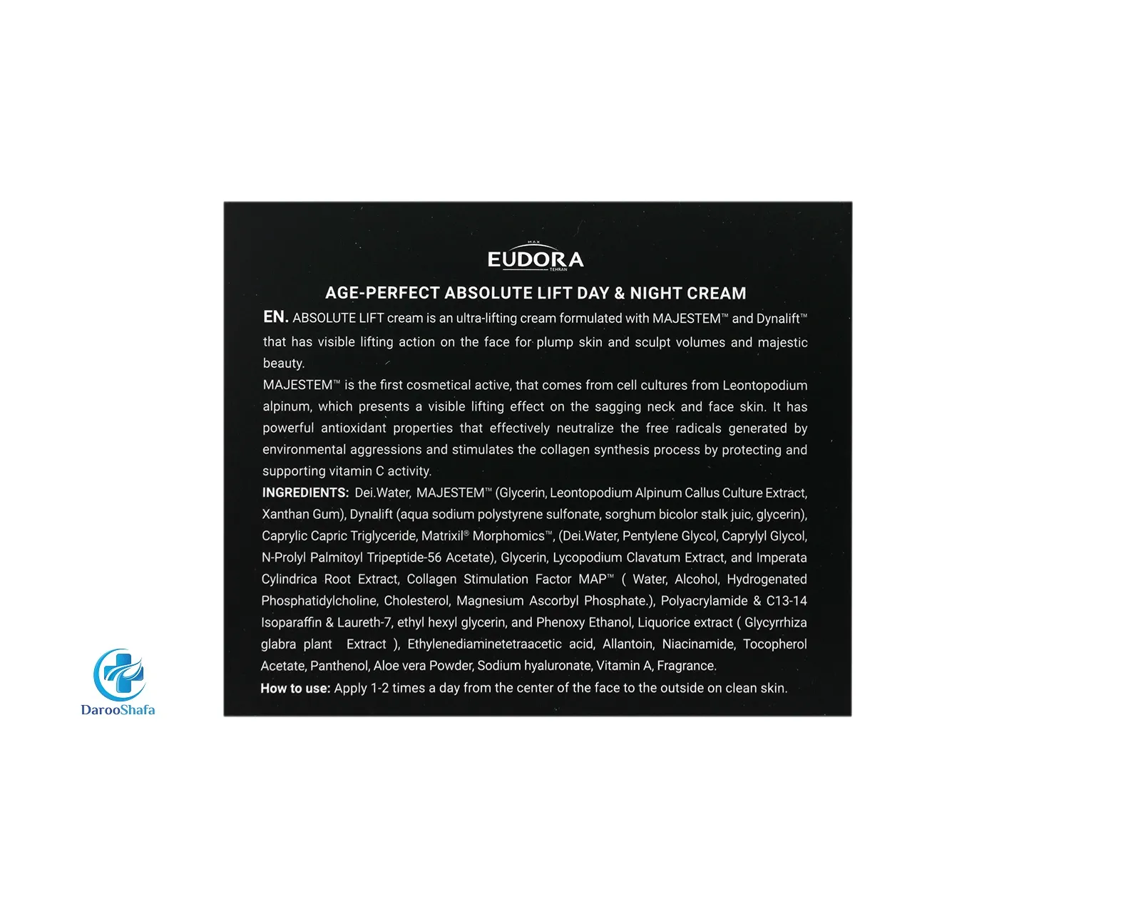 • جلوگیری از افتادگی پوست توسط دو ترکیب فعال Dynalift و Majestem