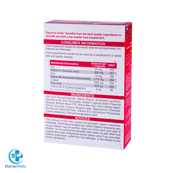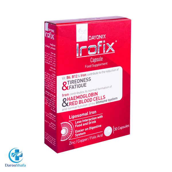 قرص irofix حاوی آهن در کنار زینک، مس، ویتامین B12 ، B9 ،B6 و C است.