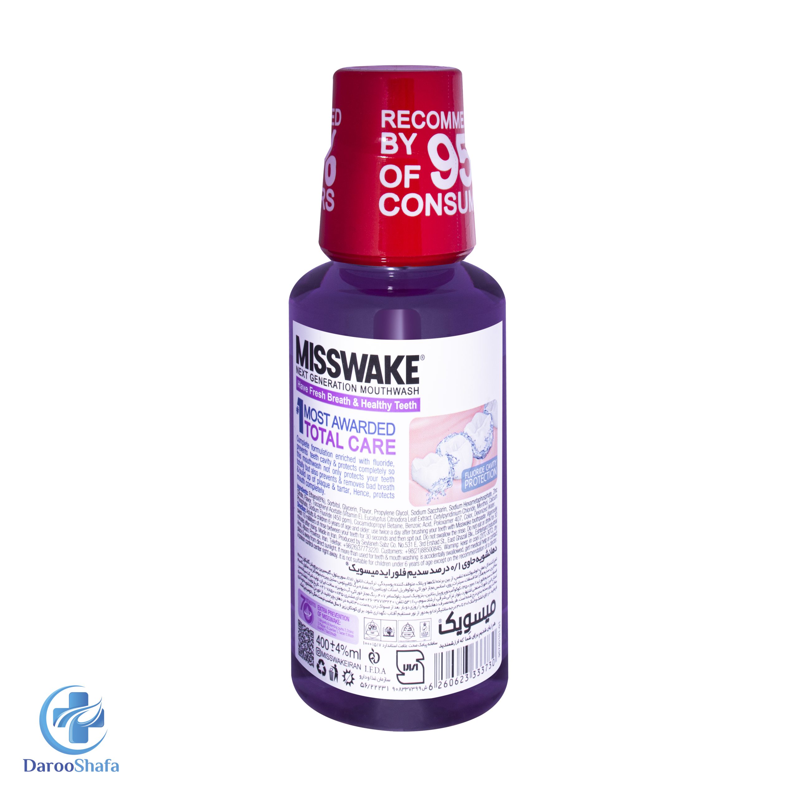 دهان شویه میسویک بنفش با دارا بودن تمام ویژگی های یک دهانشویه کامل، جهت استفاده روزانه