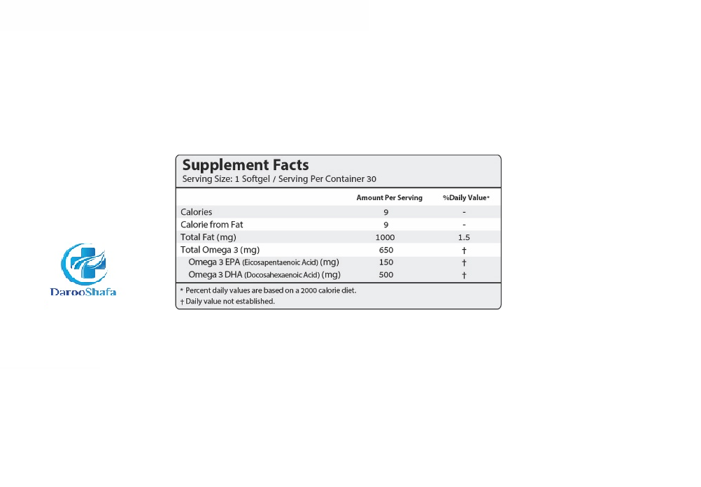سافت ژل امگا۳ دی اچ ای ( DHA ) بالا ( ورقی – بلیستر ) ۳۰ عددی کارن