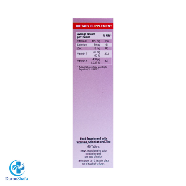 • قرص سلن پلاس حاوی سلنیوم، زینک، ویتامین C،E وA