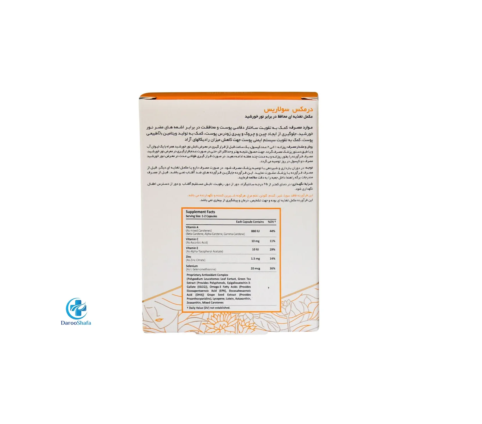درمکس سولاریس یک مکمل آنتی اکسیدان و محافظ پوست قوی می باشد.