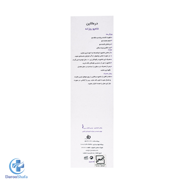 شامپو روزانه درمالاین حجم دهنده مو و درخشان کننده مو بوده و همچنین ضد الکتریسیته ساکن است.