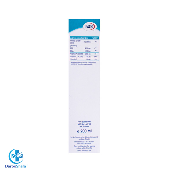 شربت امگا ۳ پلاس یوروویتال حاوی روغن کبد ماهی با درجه خلوص بالا می باشد