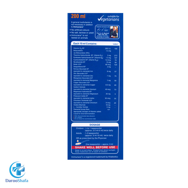 شربت ایمیونس ویتابیوتیکس | Immunace Syrup