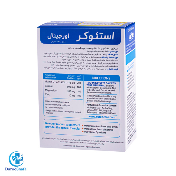 قرص استئوکر تحت امتیاز و لیسانس شرکت Vitabiotics انگلستان