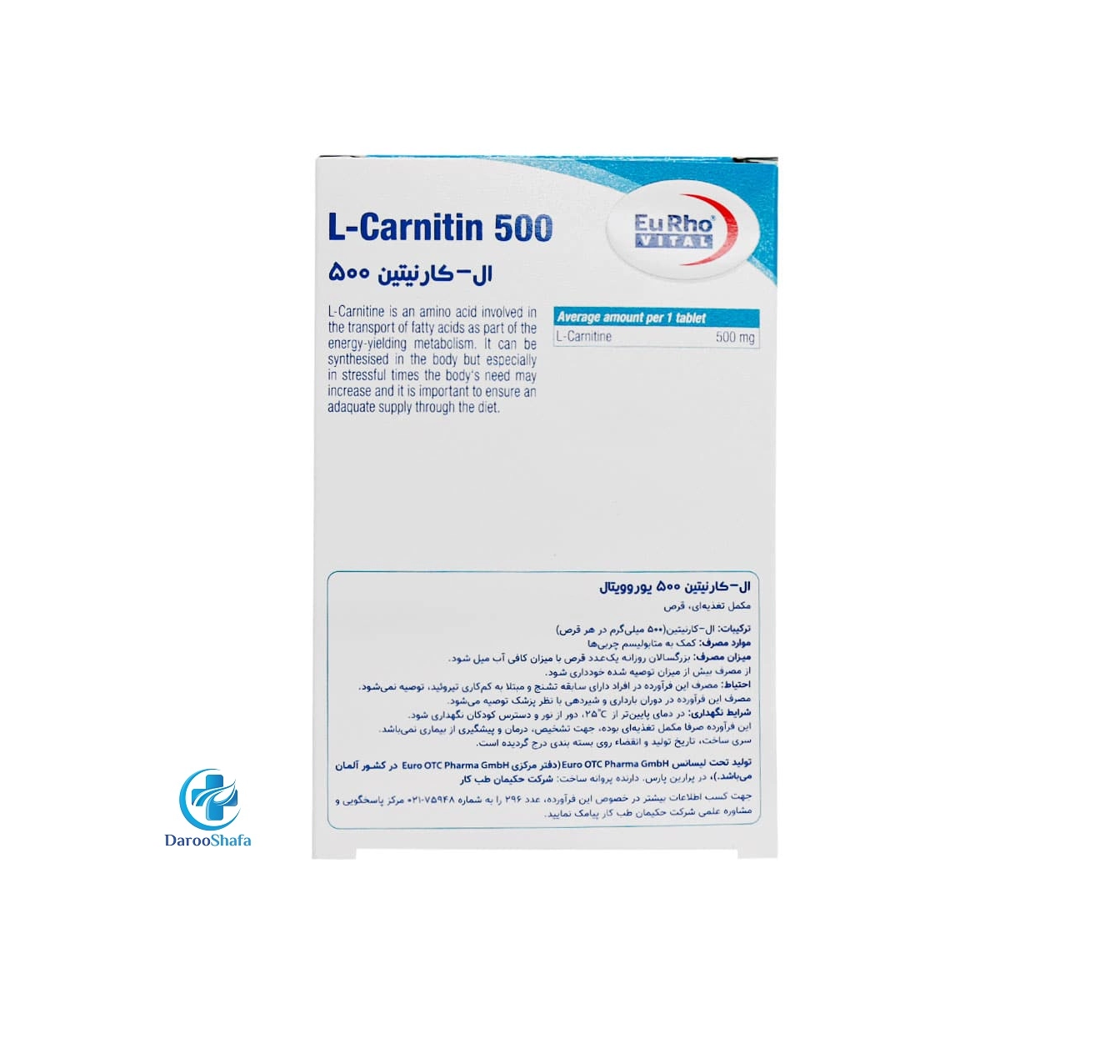 قرص ال کارنیتین ۵۰۰ میلی گرم یوروویتال