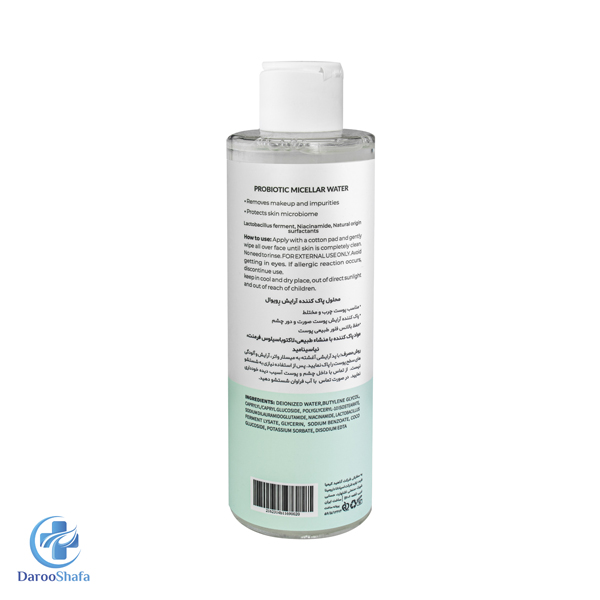 محلول پاک کننده آرایش پروبیوتیک مناسب پوست چرب و مختلط است که پاک کننده آرایش پوست صورت و دور چشم است.