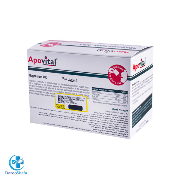• هر جعبه از ساشه منیزیم 400 آپوویتال مناسب برای استفاده به مدت 30 روز است.