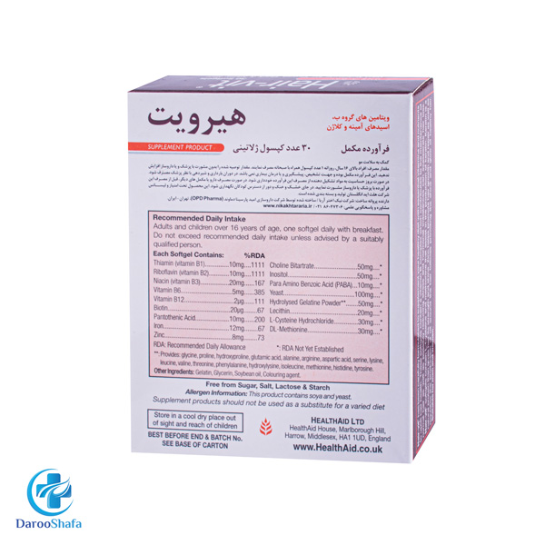 کپسول هیرویت تحت لیسانس شرکت هلث اید انگلستان توسط شرکت OPD Pharma و به سفارش شرکت