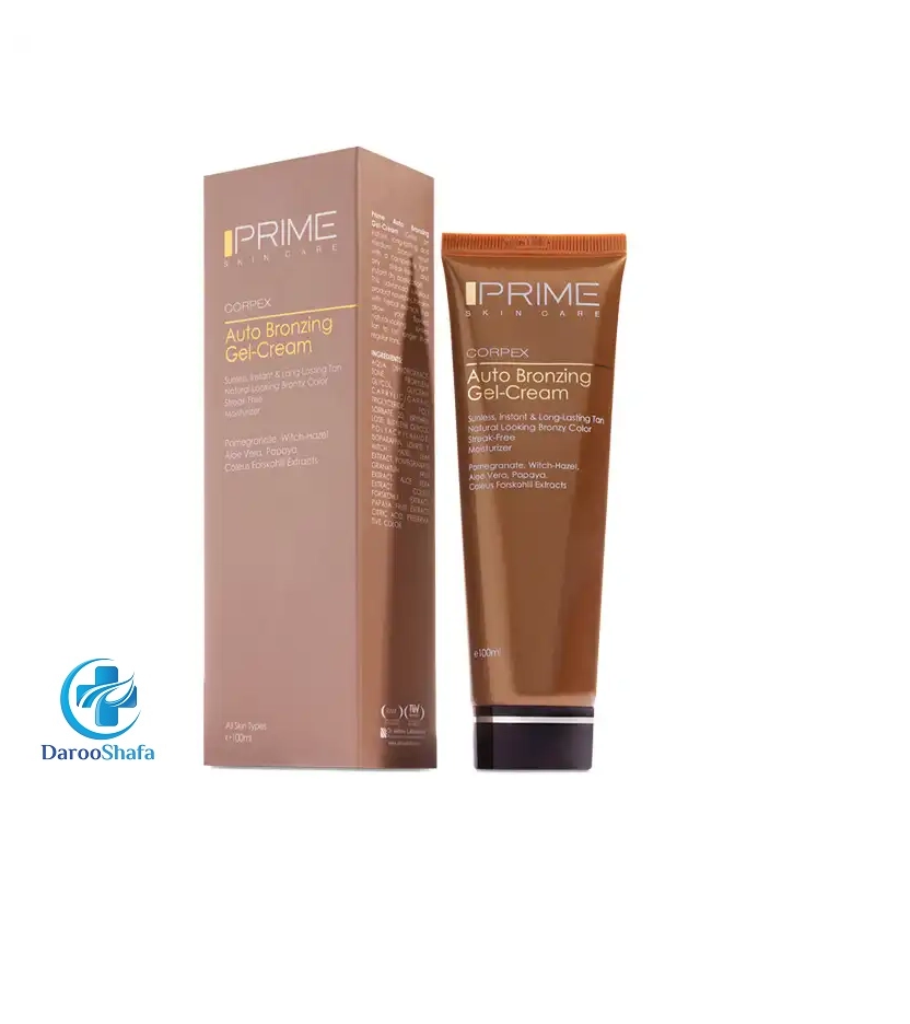 ژل کرم برنزه کننده انواع پوست صورت و بدن پرایم محصولی با بافت ژل کرم ، سبک و زود جذب است که رنگی طبیعی ، یکنواخت و بدون ایجاد لکه روی پوست ایجاد می کند.
