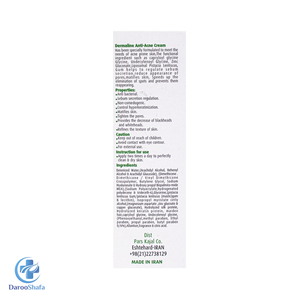 کرم مناسب پوست های جوش دار درمالاین |Tinted Anti Acne Cream 45 ml