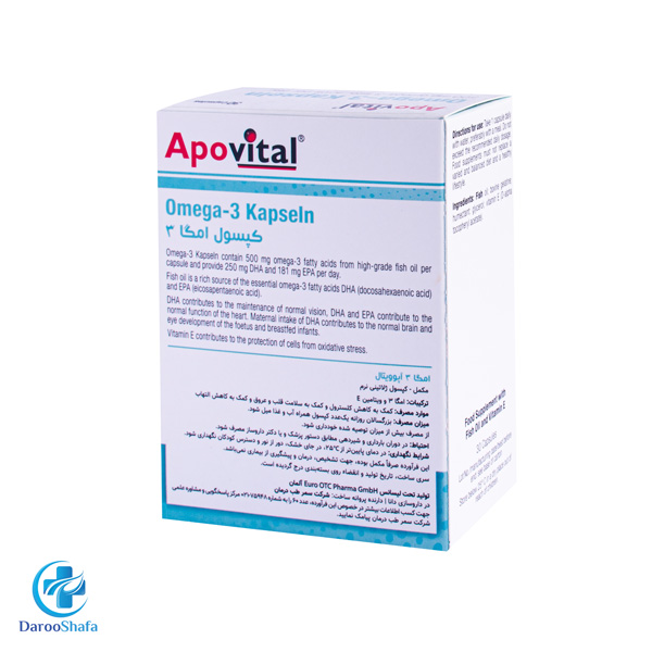 آپوویتال امگا-۳ حاوی ۵۰۰ میلی گرم امگا-۳ از روغن ماهی با کیفیت